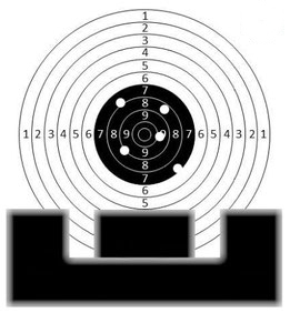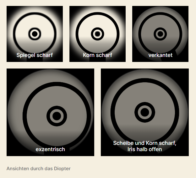 Schief in das Diopter geguckt. Zielbild an sich sieht gut aus, aber der Schuss wird weit rechts liegen. Auge muss also exakt mittig hinter dem Diopter stehen.