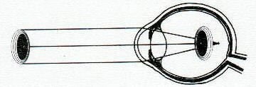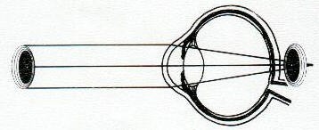 Der Augapfel des kurzsichtigen Auges ist zu lang gebaut. Das bewirkt, dass die Bilder vor der Netzhaut entstehen. Der Kurzsichtige sieht somit Dinge in der Nähe relativ deutlich, in einiger Entfernung jedoch verschwommen. Je nach Grad der Kurzsichtigkeit kann der Schütze das Diopterloch sowie den Block oder den Ring relativ deutlich, die Scheibe jedoch verschwommen wahrnehmen.